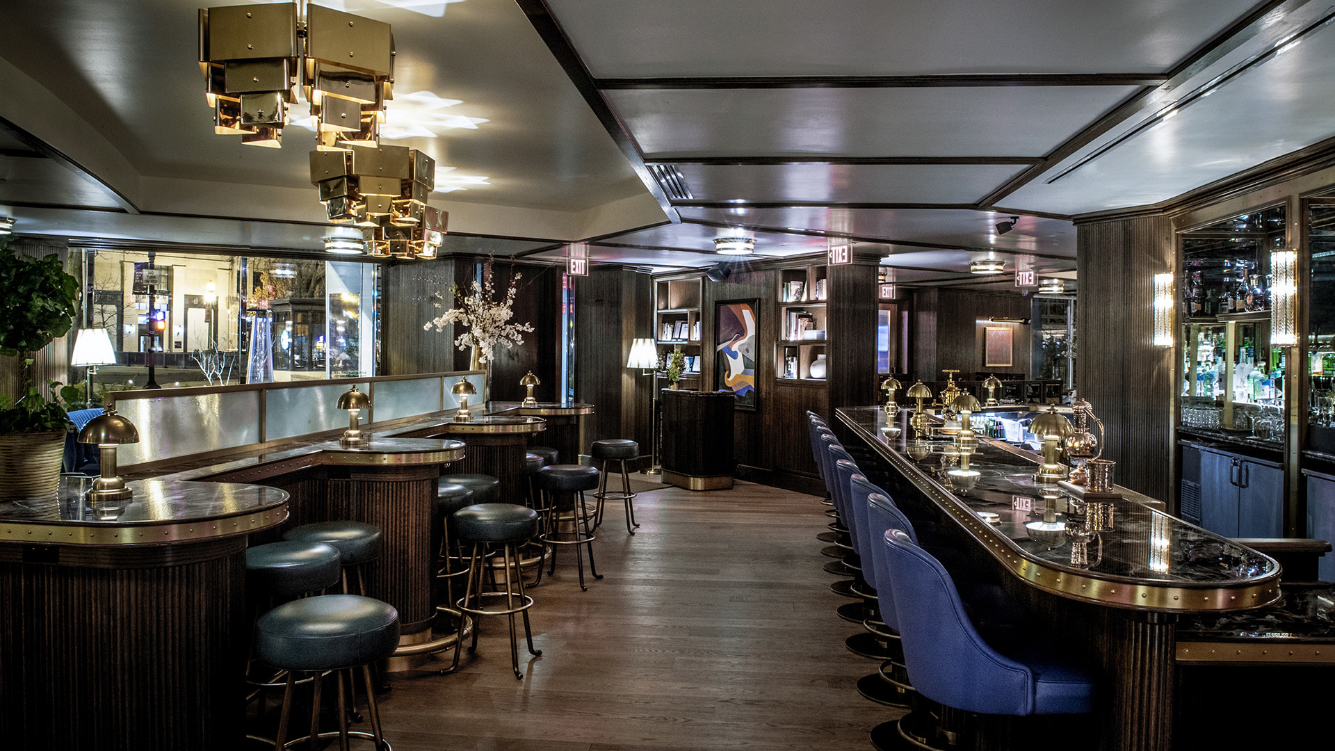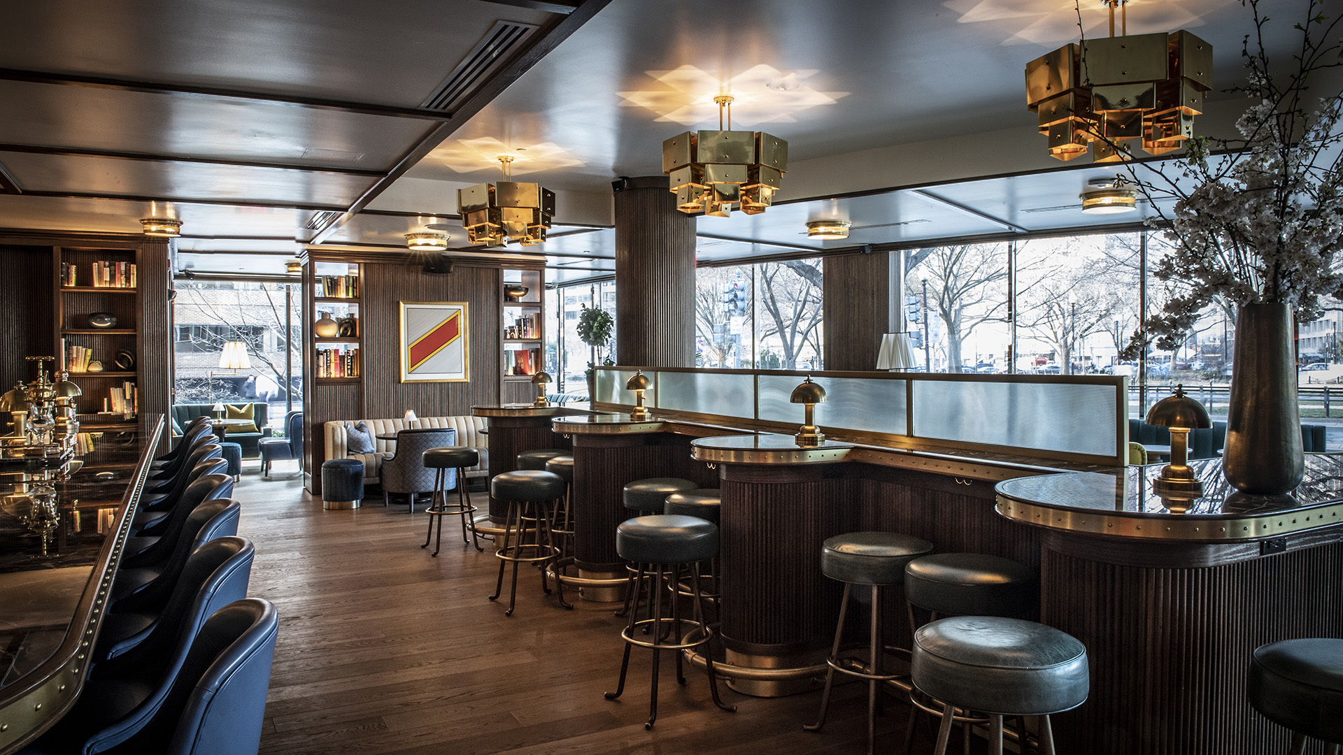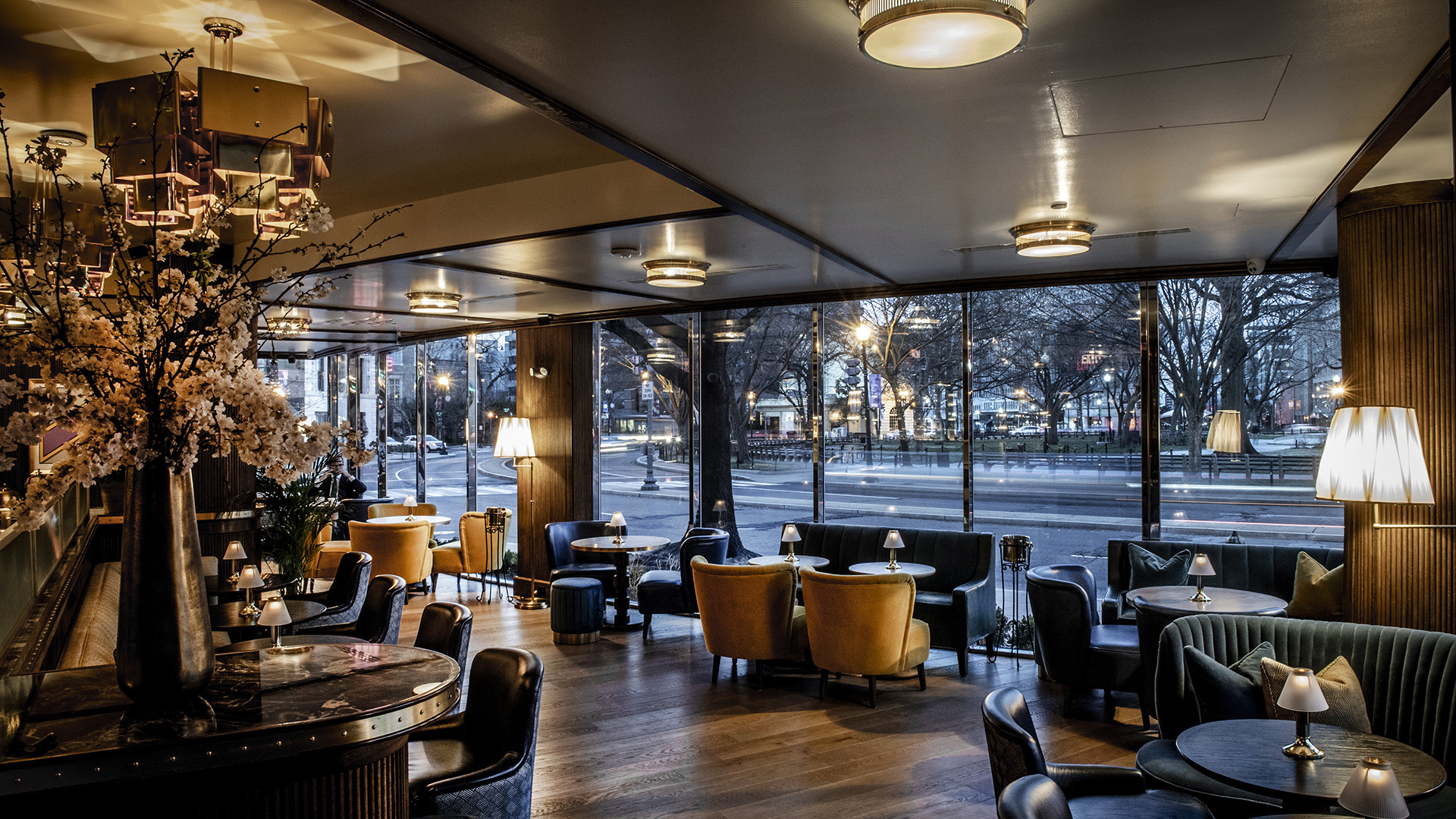 An intimate bar located in the Dupont Circle area of Washington D.C., Doyle has a club like essence with a chic mid-century ambience. Designed by Martin Brudnizki Design studio the attention to detail runs throughout the space. Its dark wood furniture details continues upon the interior walls to create a cohesive feel that compliments the moody lighting and panoramic views of the Dupont Circle.